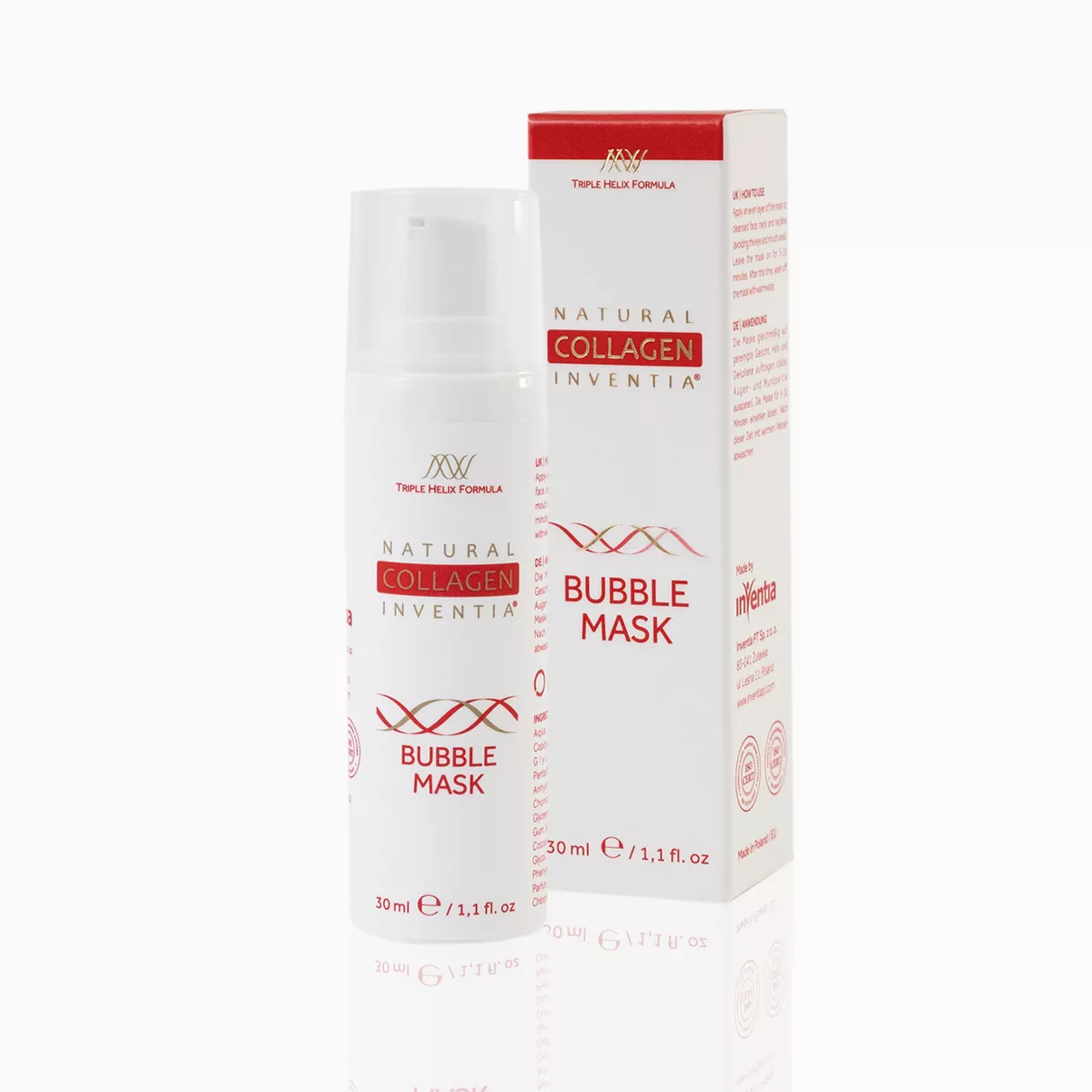 3x filtrovaný, omlazující a regenerační přírodní kolagen Inventia® FACE je určený k nadstandardní domácí péči i k profesionálnímu ošetření v kosmetických salónech. Je vhodný i pro péči při regeneraci pokožky po různých zákrocích, např. v klinikách plastické chirurgie a estetické medicíny, dermatologických centrech apod. 100% přírodní, biologicky aktivní, čistý kolagen je hypoalergenní, dermatologicky testovaný, neobsahuje parabeny ani jiné konzervanty, je vhodný i pro alergiky.